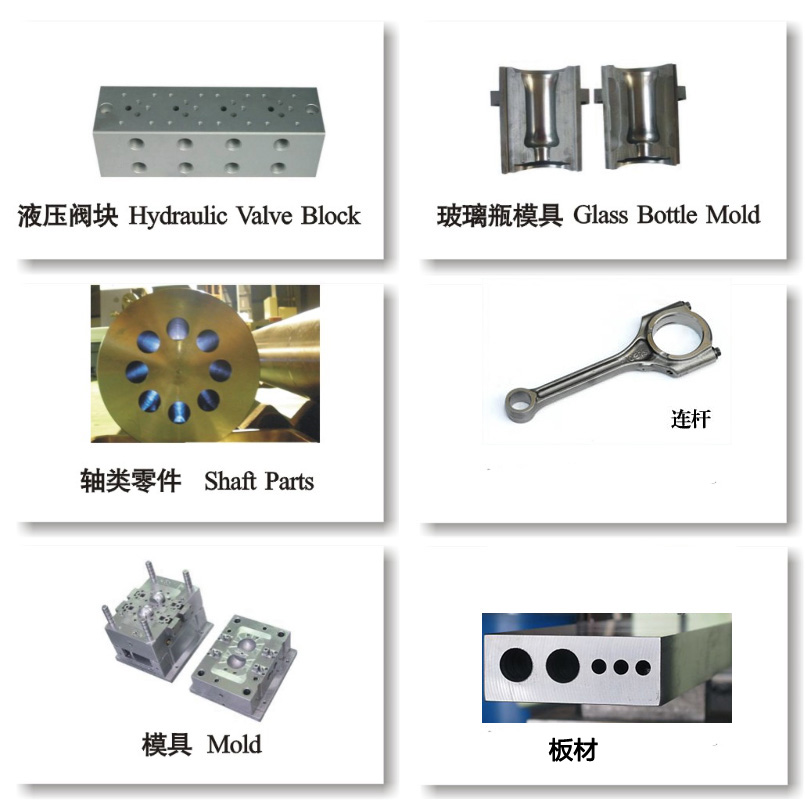 工件裝夾:軸類(lèi)零件,通過(guò)工裝安裝在工作臺(tái)上;板類(lèi)零件可以直接安裝在工作臺(tái)上;壓板 手動(dòng)壓緊。一次裝夾,可完成多個(gè)孔位深孔加工。
