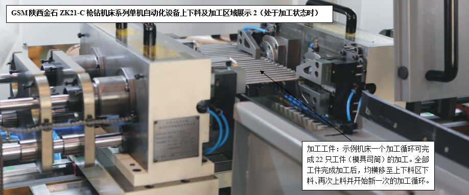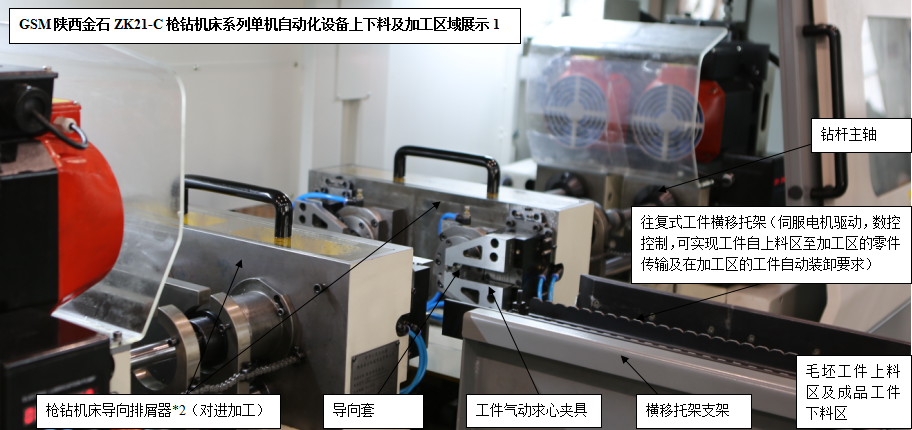 針對槍鉆加工領(lǐng)域特點(diǎn)和不同用戶的設(shè)備需求,陜西金石設(shè)計(jì)生產(chǎn)研發(fā)的ZK21-C槍鉆機(jī)床系列單機(jī)自動(dòng)化產(chǎn)品(人工低強(qiáng)度參與的上下料、自動(dòng)裝卸、自動(dòng)加工),可以使得用戶在應(yīng)對大批量軸類零件的精密深孔加工場合擁有了更多更好的選擇。